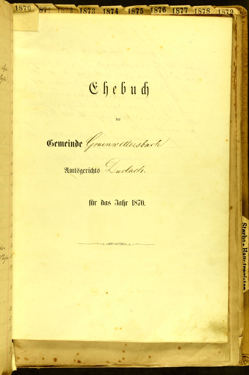 Das Grünwettersbacher Ehebuch beginnt im Jahre 1870: