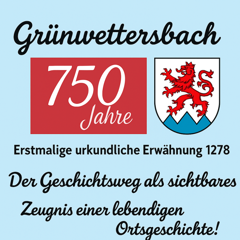 Anlässlich des bevorstehenden 750-jährigen Jubiläums der ersten urkundlichen Erwähnung Grünwettersbachs im Jahr 2028 hat der Ortschaftsrat die Idee eines „Grünwettersbacher Geschichtswegs“ ins Leben gerufen. Dieser soll historische Orte, Gebäude und Ereignisse im Ort sichtbar und erlebbar machen – ähnlich dem bereits bestehenden Waldenserweg in Palmbach, der dort die Geschichte des Ortes auf eindrucksvolle Weise vermittelt.